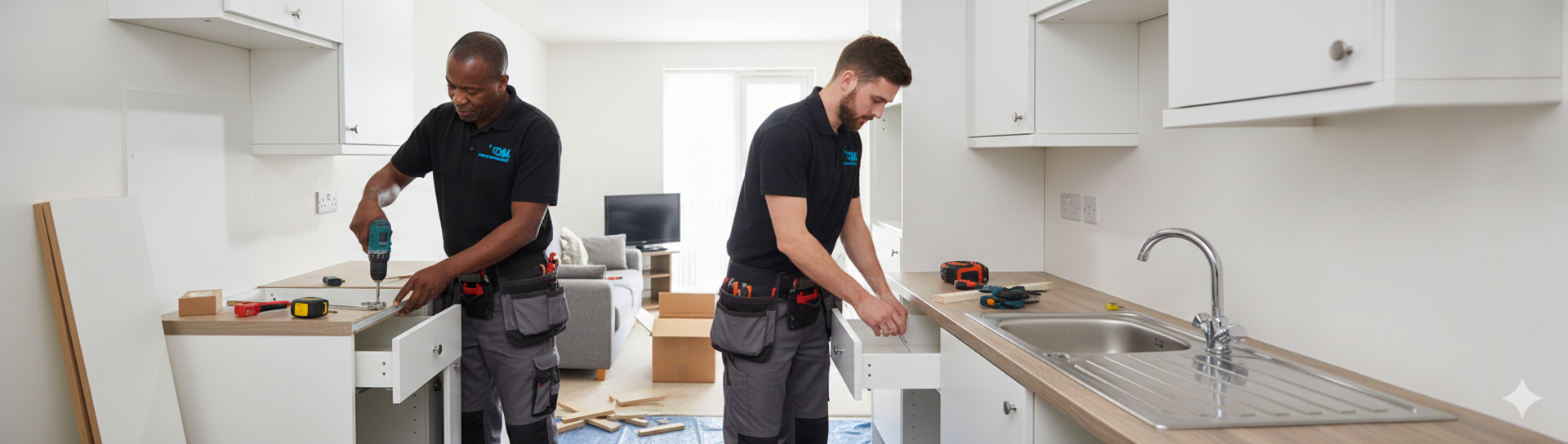- Worktops, sinks, and unit fitting